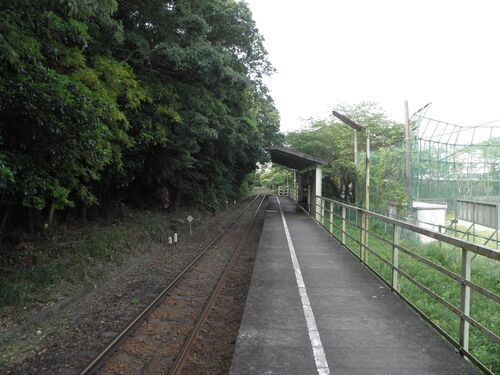 「アスモ前」は単式ホームに待合所があるのみで駅舎は無い。現在は最寄りの工場の名称が「デンソー湖西製作所」となったが、駅名は従来のままである。 駅名標 「新所原」方出口は工場へ直結している 振り返る 「掛川」方の端へ移動:こちらが一般用の出口 振…