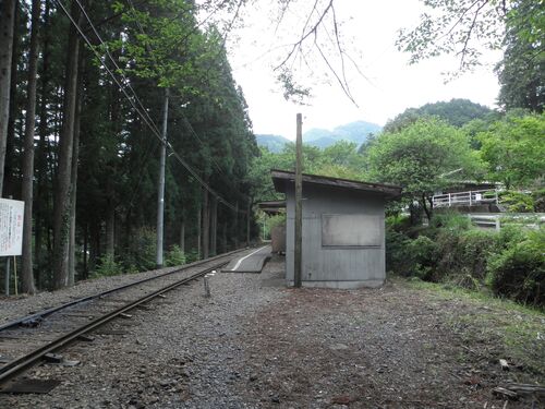 「土本」は単線の駅である。かつては鉄道でしか来られない秘境駅であった。数件の民家があって姓は全て土本さんとのこと。 下り側入口:入口とは思えない雰囲気 奥へ進むと見えてくる 待合スペース 駅名標 ホーム上り寄りで上り方を見る:上り側入口の階段が…